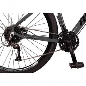 A bike possui um quadro altamente resistente e leve, fabricado em alumínio 6061, 27 combinações de marcha para você encarar qualquer subida, freios hidráulicos que garantem sua segurança seja a ladeira que for e uma suspensão 100mm com trava no ombro que proporciona conforto no seu percurso e mais desempenho quando travada!