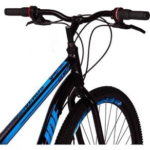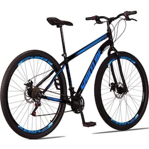 Aro: 29 | Marchas: 21 | Modalidade: Passeio | Suspensão: Sem Suspensão | Material do Quadro: Quadro em Aço | Modelo e Composição do Garfo: Garfo Rígido em Aço | Marca e Modelo do Sistema de Câmbio: Câmbio Dianteiro imp. 3v imp / Câmbio Traseiro imp. 7v imp / Trocador de Marchas Grip Shift - 21v - imp. | Marca e Composição do Pedivela: Pedivela 3 Coroas em Aço | Modelo e Composição do Freio: Freio a Disco 160mm Preto - MECÂNICO | Material da Roda: Aros Aero 36 Furos Folha Dupla Alumínio | Pneus: Pneu 29 (Imp.) | Marca e Composição dos Cubos: Cubos Rosca 36f em aço | Modelo e Composição do Guidão: Guidão Curvo em Aço | Marca e Composição do Selim: Selim Sport | Material do Canote: Aço 22.2 | Importante: Bicicleta para passeios e trilhas leves, não indicada para manobras radicais e trilhas pesadas / Consulte o tamanho de quadro adequado à sua altura antes de realizar a compra. | Montagem do Equipamento: A montagem é de responsabilidade do cliente, sugerimos que seja efetuada por uma oficina especializada. | Garantia do Fabricante: 90 dias. A garantia será validada para as bicicletas montadas e revisadas por uma oficina especializada e é referente apenas ao primeiro proprietário | Informação Relevante: Pode haver alguma diferença de tonalidade entre a imagem e o produto real, por conta do tratamento de imagens e a calibração de cores do monitor Cor: Preto+Azul