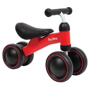 Bicicleta andador infantil 4 rodas sem pedal bike buba 10728 A bicicleta de equilíbrio buba 4 rodas para bebê e criança , estimula o equilíbrio e a coordenação motora do pequeno na fase de desenvolvimento, de forma divertida e segura. A criança aprende desde cedo a se equilibrar e a adquirir autoconfiança, facilitando a transição para a bicicleta com pedais. Além disso, a bicicleta de equilíbrio buba 4 rodas para bebê e criança é muito estável, pois possui rodas duplas na frente e atrás, com design diferenciado. Nada de pressão ou obrigação. Sozinha, a criança aprende a equilibrar-se na bicicleta sem pedais, com autonomia e muita diversão Desenvolve, naturalmente e a seu tempo, a coordenação motora, os reflexos e a lateralidade, por exemplo, que vão ajudar a adquirir equilíbrio, tanto estático quanto em movimento.