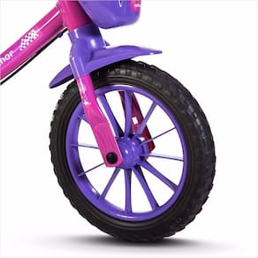 Características - Quadro, guidão e garfo em aço carbono - Pneus em Eva - Placa frontal - Selim em PU - Abraçadeira Quick Release - Freio traseiro - Guidão com limitador de giro - Trava de segurança - Idade mínima recomendada: A partir de 2 a 5 anos