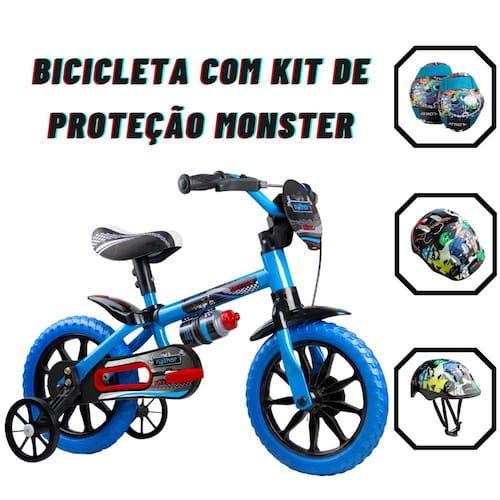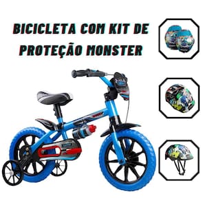 BICICLETA ARO 12 VELOZ 2 NATHOR + KIT DE PROTEÇÃO INFANTIL MONSTER - TAMAN ES200 MULTILASERDESCRIÇÃO DO PRODUTO: - As bicicletas aro 12” Nathor Veloz são equipadas com os melhores itens de segurança e conforto para crianças.Com o limitador de giro, a criança garante mais equilíbrio e segurança ao pedalar. A regulagem de ângulo do guidão e da altura do selim permitem que a postura do ciclista se mantenha correta, além de possibilitar que a bicicleta seja usada por mais tempo – acompanhando o crescimento. *MODELOS PODEM SOFRER ALTERAÇÕES NAS RODINHAS*- A aro 12” Nathor também tem uma relação de transmissão que foi desenvolvida para que a velocidade que a criança atinge pedalando seja a mesma de um adulto andando; ou seja: os pais conseguem acompanhar a brincadeira com tranquilidade, garantindo ainda mais segurança durante a diversão!- O Kit de Proteção infantil da Atrio foi desenvolvido para a prática de esportes radicais como o skate, patinete, patins, bikes. Oferecendo muito mais segurança ao seu filho, ele poderá aproveitar a brincadeira e você sentirá mais tranquilidade.ESPECIFICAÇÕES TÉCNICAS BICICLETA ARO 12 VELOZ:- Quadro, garfo e guidão em aço carbono;- Limitador de giro do guidão;- Pneus em E.V.A.;- Cestinha ou plaquinha;- Mesa de direção em nylon reforçado;- Selim com regulagem de altura;- Abraçadeira do selim em alumínio;- Freio traseiro a tambor;- Trava de segurança;- Tamanho da roda: 12";- Suporte garrafinha;- Idade Recomendada: A partir de 03 Anos;- Altura máxima recomendada: 90 cm a 100 cm;- Peso máximo recomendado: 21 kg.ESPECIFICAÇÕES TÉCNICAS KIT DE PROTEÇÃO INFANTIL MONSTER:- Modelo: ES200- Cor: Preto- Tamanho: Único- Material: PlásticoDIMENSÕES DO PRODUTO KIT DE PROTEÇÃO INFANTIL MONSTER: - Peso do Produto: 420g- Largura do produto: 24cm- Comprimento do Produto: 39cm- Altura do produto: 13cmDIMENSÕES DO PRODUTO BICICLETA ARO 12 VELOZ:- Altura do produto: 55cm- Largura do produto: 50cm- Comprimento do produto: 82cm- Peso do produto: 3,980kg- Peso da embalagem: 4,720kgITENS INCLUSOS- 01 Bicicleta Aro 12 Veloz 2 Nathor- 01 Manual de Instruções--------------------------------- 01 par de cotoveleiras- 01 par de joelheiras- 01 capacete esportivo- 01 par de Luvas- 01 Manual