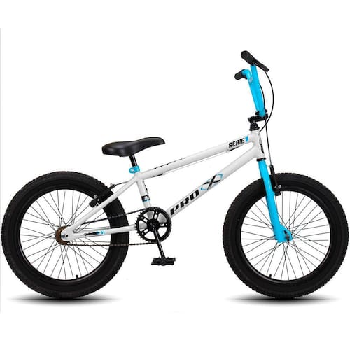 A bicicleta aro 20 BMX Pro-X Série 1 foi projetada para crianças a partir dos 6 anos que querem que aventurar com conforto e segurança no mundo do ciclismo, com estilo BMX é ideal pra crianças que gostam de adrenalina. Quadro em Aço carbono Guidão em Aço carbono Garfo em Aço carbono Aro Aero em alumínio com parede dupla Freios V-Brake - Nylon Manete em Nylon Mesinha em Alumínio Caixa de Direção Standard Movimento Central 45mm Pedivela Monobloco Coroa 36 Dentes Catraca 18 Dentes Cubos 3/8 36 Furos Pedal simples em Nylon Rosca Fina 1/2 Canote em aço 22.2mm Selim P.U. Manopla em borracha Abraçadeira com porca - : 3 meses - Necessita montagem não acompanha ferramentas - A montagem é responsabilidade do cliente indicado ser feita em oficina especializada - Peças podem ser diferentes da imagem devido lote de fabricação - A cor do produto pode ser ligeiramente diferente, devido variações de telas - Peso Suportado: 80kg - Idade Recomendada: A partir de 6 Anos ou 120cm - Não indicado para manobras radicais Marca: Não Informado Ean: 7908350247942