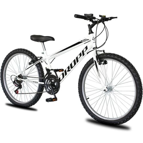 Bicicleta Aro 24 Dropp Sport Infantil Adulto18 vel marchas Freio V-Brake - Único-Branco+Preto