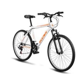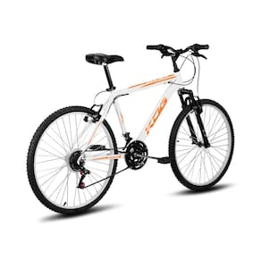 Bicicleta Aro 26 18V Com Suspensão - Cor: Branco+Laranja