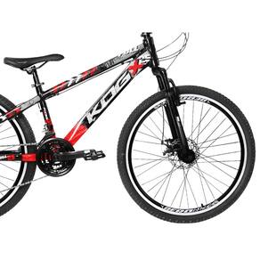 Bicicleta Aro 26 Flay KOG Freeride Full X25 Viking 18v Freio a Disco - Cor: Preto+Vermelho