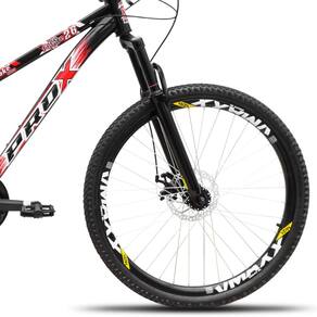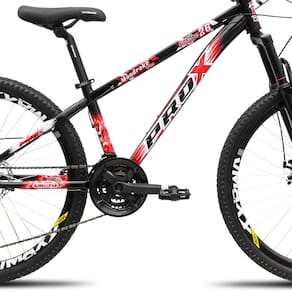 Componentes da Bike Freeride Pro-X Mandrake Hiten 2024 A bicicleta montada com o quadro PRO-X Freeride Mandrake Hiten foi projetada para encarar trilhas e terrenos acidentados, oferecendo durabilidade, controle e potência. Seus componentes foram cuidadosamente selecionados para proporcionar uma experiência de pilotagem de alta performance no freeride. Veja abaixo os detalhes: Suspensão e Estrutura Garfo: Suspensão com 80mm de curso. Quadro: PRO-X Freeride Mandrake Hiten. Aros: Vmaxx LT para freios a disco, com folha dupla para maior resistência. Raios: Zincados. Pneus: Aro 26 com cravos, oferecendo tração superior. Câmaras de Ar: aro 26 Bico Grosso. Componentes de Controle Jogo de Direção: Over Head Set. Suporte do Guidão: 31.8mm. Guidão: 31.8mm. Canote do Selim: Ajustável para conforto personalizado. Pedais: Inclusos. Arruela Calço: Ahead Set com 1cm guidão. Manoplas: MTB. Abraçadeira do Selim com Blocagem: Para ajustes rápidos e práticos. Selim: MTB. Sistema de Freios Disco de Freio: 160mm para uma frenagem eficiente e segura. Freio a Disco Mecânico: Com pinças e pastilhas, oferecendo potência de frenagem confiável. Relação (Transmissão da Bike) Roda Livre: Indexada 7 velocidades. Pedivela: Aço encapado. Trocador: 21 velocidades (3x7). Câmbio Dianteiro: Indexado, com 3 velocidades. Câmbio Traseiro: Indexado, com 7 velocidades. Cubos: De rosca. Corrente: Indexada 7V. Jogo de Centro: Selado e rolamentado.