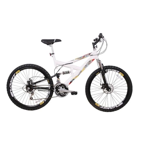 Bicicleta aro 26 MTB Full Suspension, com duplo freio a disco, modelo Max 260, na cor Branca, marca Dalannio Bike