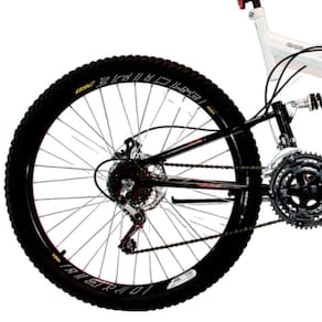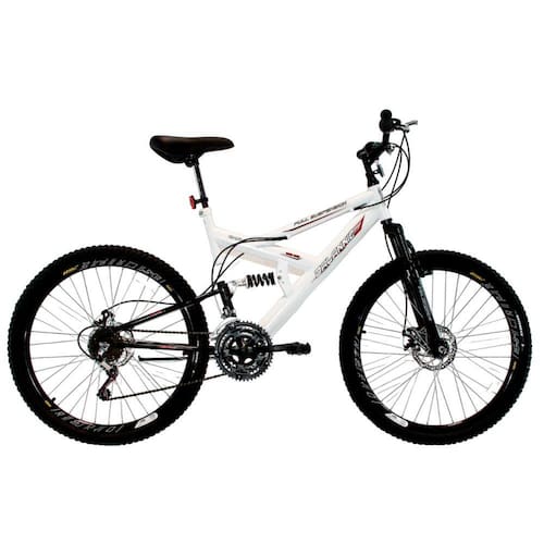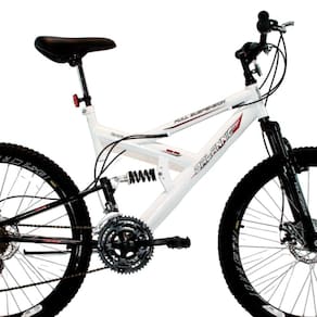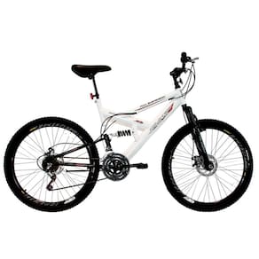 Bicicleta aro 26 MTB Full Suspension, com duplo freio a disco, modelo Max 260, na cor Branca, marca Dalannio Bike