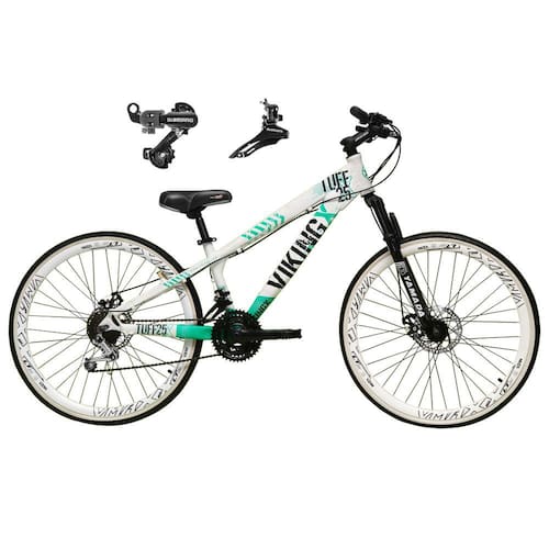 Bicicleta Aro 26 Vikingx Tuff 21v Alumínio Câmbio Shimano Freio a Disco Aros Vmaxx Brancos - Branco\Verde X25 - Branco\Verde X25