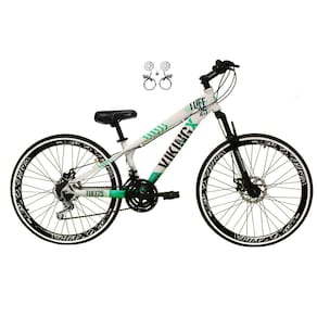 Bicicleta Aro 26 Vikingx Tuff 21v Alumínio Freio Hidráulico a Disco Aros Vmaxx Pretos - Branco\Verde X25