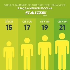 Aro 29 mais rendimento em terrenos planos e trilhas Quadro em alumínio leve e resistente Transmissão com 21 marchas (3x7) Freios a disco dianteiro e traseiro Rodas em alumínio mais durabilidade Selim confortável com ajuste de altura Ideal para MTB e passeios urbanos