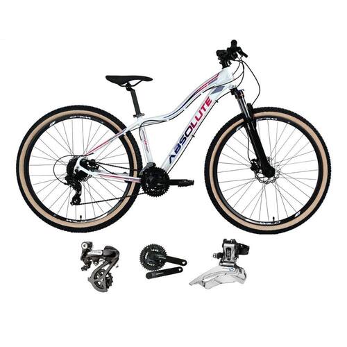 Bicicleta Absolute Hera Feminina com Freio a disco hidráulico, garfo de suspensão com trava, quadro com ótimo acabamento e em alumínio, câmbios Shimano altus 24v. Quadro 29 Absolute Hera / Garfo 29 suspensão 100mm com trava / Suporte do guidão em alumínio preto / Guidão 31.8mm em alumínio preto / Canote do selim 27.2 em alumínio preto Com Carrinho / Selim Sport Preto / Abraçadeira do Selim alumínio Preto / Aros Aero Parede dupla reforçado / Raios Pretos / Cubos Pretos alumínio com blocagens / Pneus 29 com cravo com Faixa Bege / Movimento central selado rolamentado / Freios a disco Hidráulicos com discos inox 160mm / Alavancas Semi-automáticas Rapid Fire / Câmbio Traseiro Shimano Altus / Câmbio Dianteiro Shimano Altus / Corrente Index Dto ou Paco / Pedivela Alumínio Shimano Tourney Preto / Pedal Plataforma Nylon preto / Catraca K7 de 8v gta-sun (de encaixe)