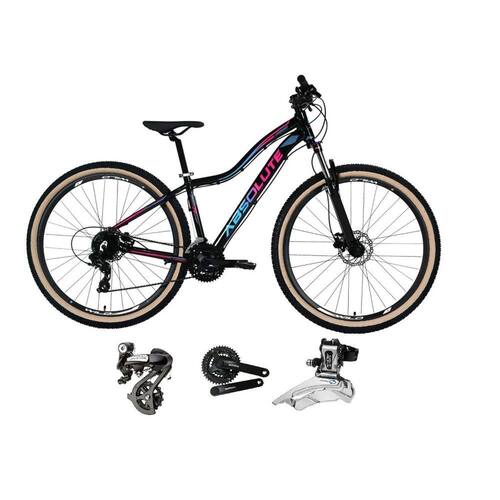 Bicicleta Absolute Hera Feminina com Freio a disco hidráulico, garfo de suspensão com trava, quadro com ótimo acabamento e em alumínio, câmbios Shimano altus 24v. Quadro 29 Absolute Hera / Garfo 29 suspensão 100mm com trava / Suporte do guidão em alumínio preto / Guidão 31.8mm em alumínio preto / Canote do selim 27.2 em alumínio preto Com Carrinho / Selim Sport Preto / Abraçadeira do Selim alumínio Preto / Aros Aero Parede dupla reforçado / Raios Pretos / Cubos Pretos alumínio com blocagens / Pneus 29 com cravo com Faixa Bege / Movimento central selado rolamentado / Freios a disco Hidráulicos com discos inox 160mm / Alavancas Semi-automáticas Rapid Fire / Câmbio Traseiro Shimano Altus / Câmbio Dianteiro Shimano Altus / Corrente Index Dto ou Paco / Pedivela Alumínio Shimano Tourney Preto / Pedal Plataforma Nylon preto / Catraca K7 de 8v gta-sun (de encaixe)