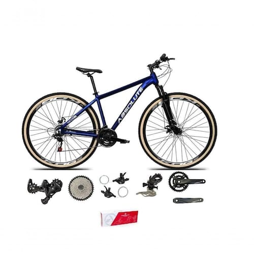 Bike aro 29, com quadro Absolute Nero 5 (com cabeamento interno) nova na caixa a , produto com ótima qualidade e acabamento, possui 18 marchas com sistema de coroa dupla e 9 catracas (conhecido como 2x9), alavancas rapid fire que a cada clique uma marcha é trocada, câmbio dianteiro e traseiro absolute, Catraca do tipo k7 de encaixe, garfo com suspensão e sistema de trava para melhor performance, sistema de freio a disco hidráulico, pneus com cravo baixo para uso em terra e asfalto. Bicicleta pré montada, vai precisar apenas fixar a roda dianteira, guidão, selim e pedais. Segue abaixo características da bike: Quadro 29 Absolute Nero 5 em Alumínio com cabeamento interno / Garfo 29 100mm suspensão com Trava no Ombro / Suporte do guidão em alumínio preto (gta, absolute, ksw-dependerá da disponibilidade no estoque) / Guidão em alumínio preto(gta, absolute, gti, zoom-dependerá da disponibilidade no estoque) / Canote do selim em alumínio preto Com carrinho(gta, absolute, gti, zoom-dependerá da disponibilidade no estoque) / Selim Sport preto / Abraçadeira do Selim alumínio Preto / Aros Aero Parede dupla reforçado / Raios Pretos / Cubos Pretos Alumínio para K7 com blocagens / Pneus 29 Com Cravo / Movimento central selado rolamentado / Freios a disco Hidráulicos com discos inox 160mm(Gta ou Absolute-dependerá da disponibilidade no estoque) / lavancas Semi-automáticas / Rapid Fire Absolute A5 2x9 / Câmbio Traseiro Absolute A5 / Câmbio Dianteiro Absolute A5 / Corrente Index paco/dto / Pedivela Alumínio Duplo Absolute 24/38D 175mm / Pedal Plataforma Nylon preto / Cassete Absolute 9v (11, 13, 15, 18, 21, 24, 28, 34, 40D) / Peso de Referência 14,8kg peças descritas acima que serão enviadas de acordo com disponibilidade não tendo A opção de escolher cada uma. ;