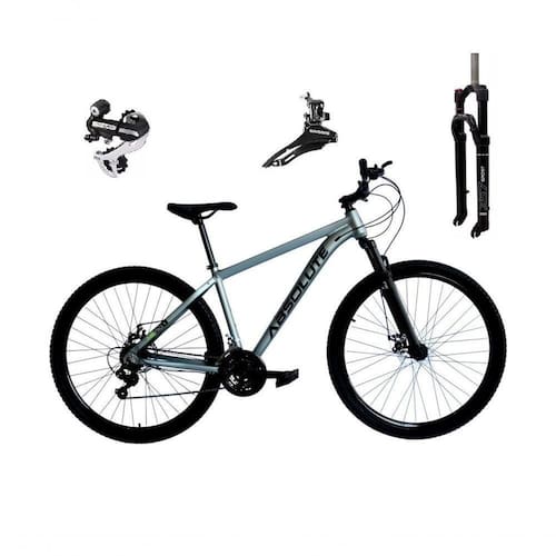 Bicicleta Aro 29 Absolute Nero 5 Câmbio Shimano 24v Acera K7 Garfo Trava Freio A Disco - Cinza
