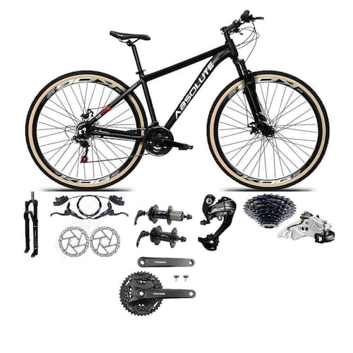 Bicicleta Aro 29 Absolute Nero 5 Câmbios 27v Shimano Altus Freios Hidráulicos Pneu Com Faixa - Preto Bike aro 29, com quadro Absolute Nero 5, nova na caixa a , produto com ótima qualidade e acabamento, possui 27 marchas com sistema de alavancas rapid fire que a cada clique uma marcha é trocada, câmbio dianteiro SHIMANTO ALTUS e traseiro SHIMANO ALTUS (M370 OU M2000, DEPENDERÁ DA DISOPONIBILIDADE NO ESTOQUE) , garfo com suspensão e sistema de trava para melhor performance, sistema de freio a disco hidráulico, pneus com cravo baixo para uso em terra e asfalto. Bicicleta pré montada, vai precisar apenas fixar a roda dianteira, guidão, selim e pedais. Segue abaixo características da bike: Quadro 29 Absolute Nero 5 em Alumínio / Garfo 29 suspensão ABSOLUTE com Trava no Ombro Suporte do guidão em alumínio preto / Guidão em alumínio preto / Canote do selim em alumínio preto Com carrinho / Selim Sport Preto / Abraçadeira do Selim alumínio Preto / Aros Aero Parede dupla reforçado / Raios Pretos / Cubos em Alumínio K7 Pretos com blocagens / Pneus 29 com cravo / Movimento central selado rolamentado / Freios a disco Hidráulicos om discos inox 160mm / Alavancas Semi-automáticas Rapid Fire GTA ou SUNRUN / Câmbio Traseiro SHIMANO ALTUS 27V (M370 OU M2000, DEPENDERÁ DA DISOPONIBILIDADE NO ESTOQUE) / Câmbio Dianteiro SHIMANO ALTUS ;/ Corrente Index DTO / Pedivela SHIMANO Mt101 ou M371 27v(DEPENDERÁ DA DISOPONIBILIDADE NO ESTOQUE) / Pedal Plataforma Nylon preto / Cassete k7 GTA 11/32 cromada.