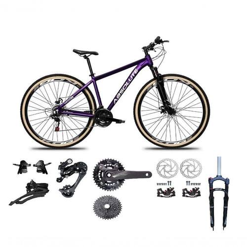 Bicicleta Aro 29 Absolute Nero 5 Kit 2x9 Gta Sunrun Freio Disco K7 Garfo C/trava Pneu C/faixa -roxo Tam.13.8