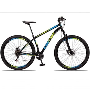 Suspensão: Dianteira | Modalidade: Mountain Bike | Aro: 29 | Marchas: 21 Cor: Preto/Verde e Azul