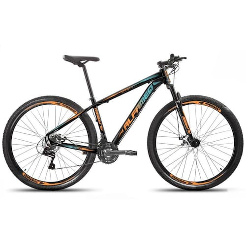 Bicicleta Aro 29 Alfameq Stroll Câmbio Shimano Freio A Disco 24 Marchas - 19-PRETO COM LARANJA E AZUL