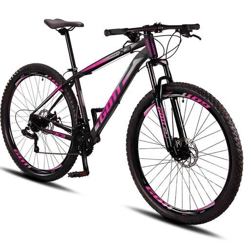Marca: Gott Bike | Linha: MTB | Modelo: 21vl Moutain bike freio a disco - Propp X3 | Idade: Adultos | Gênero: Sem gênero | Material do quadro: Alumínio | Aro: 29 | Quantidade de Velocidades: 21 | Peso: 15 | Peso máximo suportado: 120 | Tipo de Bicicleta: Moutain Bike | Com pé de apoio: Não | Com rodas de treinamento: Não | Com cesto: Não | Com impacto positivo: Sim | Câmbios dianteitos: 3vl | Câmbios Traseiros: 7vl | É dobrável: Não | Requer montagem: Sim | Marchas: 21 Cor: Preto/Rosa