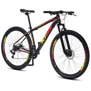 Bicicleta aro 29 Alumínio KRW Shimano 24 Velocidades Marchas Freio a Disco Suspensão dianteira K11 - 15.5-Preto/Amarelo e Vermelho