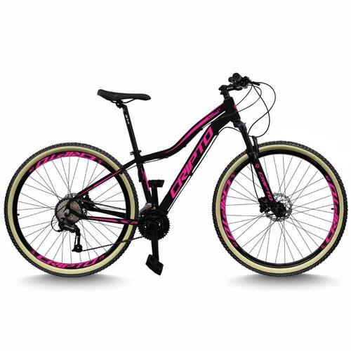 Suspensão: Dianteira | Modalidade: Mountain Bike | Aro: 29 | Marchas: 24 Cor: Preto/Rosa