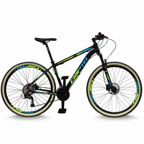 Suspensão: Dianteira | Modalidade: Mountain Bike | Aro: 29 | Marchas: 24 Cor: Preto/Verde e Azul