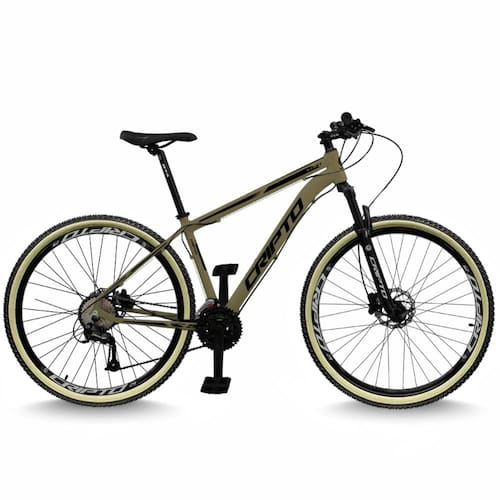 Bicicleta Aro 29 Cripto 24 Marchas Freios Disco e Suspensão Pneu Bege - 19"-Verde Militar/Preto
