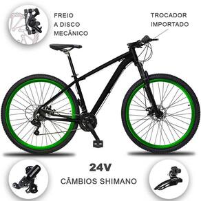 Bicicleta Aro 29 Drais Clean 24v Câmbios Shimano Freios a Disco Alumínio MTB - Cor: Preto+Verde | Tamanho: 21