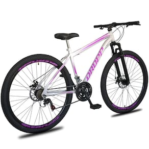 A Dropp Sport com quadro em aço, possui um ótimo custo benefício para quem quer se locomover na cidade com desempenho e segurança, seu quadro é super resistente, ossui 21 combinações de marchas com trocadores Ez-Fire Engate Rápido 21V - (Imp.) que proporcionam trocas rápidas e precisas, freios à disco para maior segurança do ciclista e suspensão dianteira que garante o conforto em terrenos irregulares.