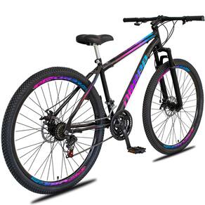 Bicicleta Aro 29 Dropp Sport Aço Carbono 21 Marchas Vel Freio a Disco e Suspensão - 18-Preto+Azul