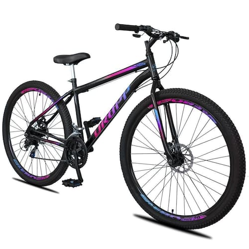 Possui 21 combinações de marchas com trocadores Ez-Fire Engate Rápido 21V - (Imp.) que proporcionam trocas rápidas e precisas, e fechando o conjunto, freios à disco para maior segurança do ciclista.