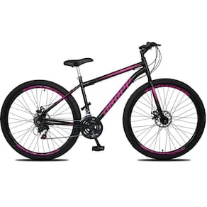 Aro: 29 | Marchas: 21 | Modalidade: Passeio | Suspensão: Sem Suspensão | Material do Quadro: Quadro Dropp Sport em Aço | Modelo e Composição do Garfo: Garfo Rígido em Aço | Marca e Modelo do Sistema de Câmbio: Câmbio Dianteiro imp. 3v imp / Câmbio Traseiro imp. 7v imp / Trocador de Marchas Grip Shift - 21v - imp. | Marca e Composição do Pedivela: Pedivela 3 Coroas em Aço | Modelo e Composição do Freio: Freio a Disco 160mm Preto - MECÂNICO | Material da Roda: Aros Aero 36 Furos Folha Dupla Alumínio | Pneus: Pneu 29 (Imp.) | Marca e Composição dos Cubos: Cubos Rosca 36f em aço | Modelo e Composição do Guidão: Guidão Curvo em Aço | Marca e Composição do Selim: Selim Sport | Material do Canote: Aço 22.2 | Importante: Bicicleta para passeios e trilhas leves, não indicada para manobras radicais e trilhas pesadas / Consulte o tamanho de quadro adequado à sua altura antes de realizar a compra. | Montagem do Equipamento: A montagem é de responsabilidade do cliente, sugerimos que seja efetuada por uma oficina especializada. | Garantia do Fabricante: 90 dias. A garantia será validada para as bicicletas montadas e revisadas por uma oficina especializada e é referente apenas ao primeiro proprietário | Informação Relevante: Pode haver alguma diferença de tonalidade entre a imagem e o produto real, por conta do tratamento de imagens e a calibração de cores do monitor | Baterias são necessárias?: Não | Principais Características do Produto 1: Conforme descrição | Principais Características do Produto 2: Conforme descrição | Certificação de teste externa: Não existe | Componentes incluídos: Conforme descrição | Fabricante: SOUTH BIKE | Fonte de energia: Humana | Certificado de Conformidade do Produto: Não existe Cor: Preto+rosa