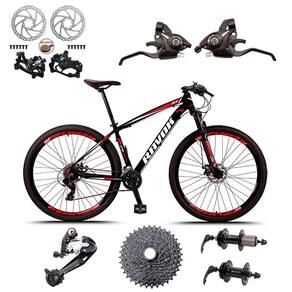 A bicicleta Ravok foi desenvolvida para quem quer realizar passeios e pegar trilhas. Com seu quadro em alumínio 6061, fornece segurança e leveza no seu pedal.O modelo possui 27 velocidades, freio a disco mecânico que proporciona segurança nas frenagens, cubo cassete em ALUMINIO e suspensão dianteira para um passeio confortável em diversos tipos de terrenos.Disponível em diversas cores que garante um estilo próprio para você.Veja abaixo a descrição detalhada dos componentes:QUADRO: Alumínio 6061.SUSPENSÃO: Aro 29ALAVANCA/TROCADOR: rápid fire- 27vCÂMBIO TRASEIRO: 9vCÂMBIO DIANTEIRO: 3vCASSETE: 9V indexPEDIVELA: Triplo em aço revestido 24/34/42 indexCORRENTE: index 9vFREIOS: Disco mecânicoCUBOS: 36 Furos CASSETE em ALUMÍNIO esferados com brocagemAROS: Aero em alumínio parede dupla 36fPNEUS: Aro 29 x 2,10 MTB cravo baixoCÂMARA DE AR: 29 x 1.95 bico grossoMOVIMENTO CENTRAL: Roller 122.5 Preto SeladoMOVIMENTO DE DIREÇÃO: Aheadset Preto semi integradoESPAÇADOR: Aheadset Em AlumínioGUIDÃO: expandido em alumínio - PretoSUPORTE DE GUIDÃO: Preto em Alumínio 31,8mmCANOTE DE SELIM: Preto em Alumínio 27,2x350mmBANCO / SELIM: Sport PU MTBABRAÇADEIRA: 31,8mm em Alumínio PretoPEDAL: Nylon plataforma pretoOBS: IMAGEM MERAMENTE ILUSTRATIVA, BIKE VAI CONFORME DESCRIÇÃORECOMENDAÇÃO DE TAMANHOSAltura do ciclista: 1,65 até 1,71m ? Tamanho de quadro 15Altura do ciclista: 1,72 até 1,76m ? Tamanho de quadro 17Altura do ciclista: 1,77 até 1,82m ? Tamanho de quadro 19Altura do ciclista: 1,83 até 1,90m ou mais ? Tamanho de quadro 21MONTAGEM- A bicicleta é montada, porém, para acomodação na embalagem e transporte, algumas peças são enviadas desmontadas.- A instalação é de responsabilidade do consumidor, orientamos que seja efetuada por mão de obra especializada.- Por motivo de transporte e manuseio, pode haver a necessidade de efetuar uma revisão (câmbios, freios) ao receber o produto.GARANTIA - Fábrica / 3 MesesNÃO COBRE DEFEITOS POR MAU USO OU PELA MONTAGEM / REVISÃO INADEQUADA DO PRODUTO.- A garantia será validada para as bicicletas montadas e revisadas por uma oficina especializada e é referente apenas ao primeiro proprietário.- A garantia não se aplica para os itens de desgaste natural tais como: Pneu, câmaras, cabos, pastilhas de freio, centragem de aros, pintura do quadro, componentes da transmissão (corrente, engrenagens do pedivela, engrenagens do cassete ou roda livre)..OUTRAS OBSERVAÇÕES:- As fotos do anúncio são feitas com quadros do tamanho 17''.- A geometria do quadro (desenho) pode mudar conforme o tamanho escolhido alterando a inclinação do tubo superior.- Pode haver alguma diferença de tonalidade entre a imagem e o produto real, por conta do tratamento de imagens e a calibração de cores da sua tela.- Dependendo o lote do produto, algumas peças podem ter cores diferentes da imagem.