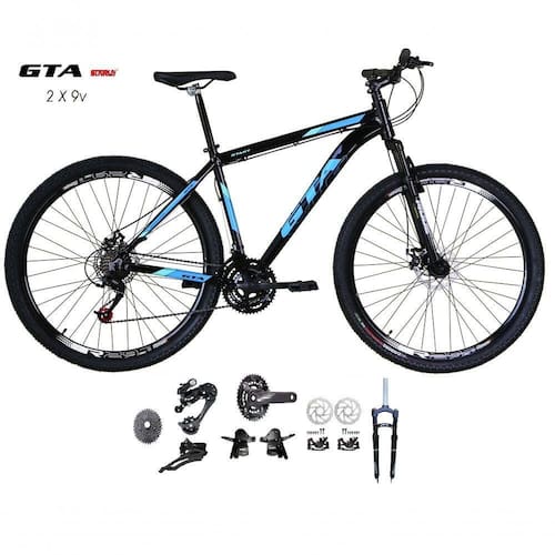 Bicicleta Aro 29 Gta Start Kit 2x9 Gta Sunrun Freio Disco K7 11/36 Pedivela 24/38d Garfo Com Trava - Preto/azul Tam.21