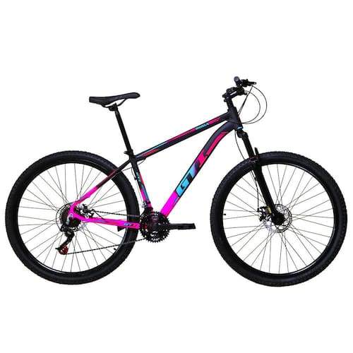 Bicicleta Aro 29 Gti Roma Alumínio 21v Freio a Disco Garfo Suspensão - Preto/Rosa - TAMANHO 19