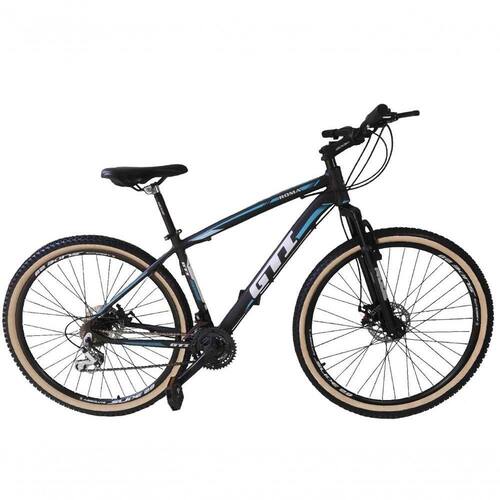 Bicicleta Aro 29 Gti Roma Alumínio 27v Freio Disco Mecânico Pneu Faixa Bege - Preto-azul Tam.15