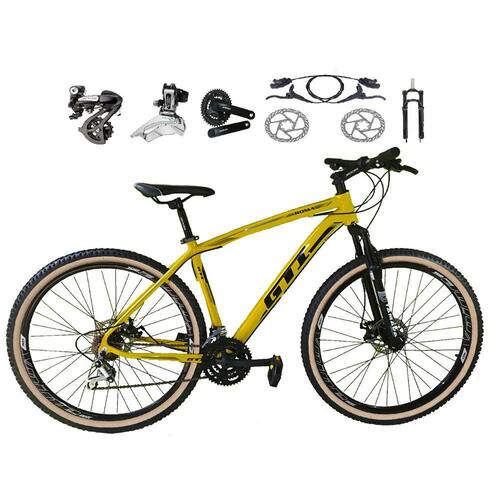 Bicicleta aro 29 Gti Roma Shimano Altus 24V Freio a Disco Hidráulico Garfo com Trava Pneu com Faixa Bege - Amarelo - TAMANHO 15