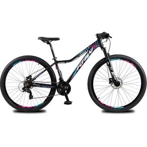 Bicicleta aro 29 KRW Alumínio 24 Vel Marchas Freio Hidráulico Suspensão dianteira Mountain Bike KR3 - 15.5-Preto/Rosa e Azul