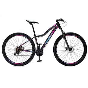 Marchas: 21 | Suspensão: Dianteira | Modalidade: Mountain Bike | Aro: 29 | Material do Quadro: Aluminio Cor: Preto/Rosa e Azul
