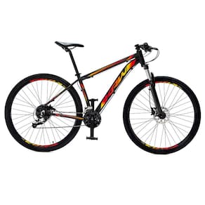 Bicicleta Aro 29 KRW Spotlight Alumínio Shimano Altus 27 Vel Hidráulico com Trava SX9 - 17-Preto/Amarelo e Vermelho