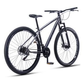 A suspensão dianteira auxilia na absorção de impactos em terrenos irregulares, e o pedivela triplo em aço garante maior eficiência durante o uso. Os pneus 29x2.10 oferecem boa aderência, e o selim ergonômico MTB proporciona conforto em pedaladas prolongadas.