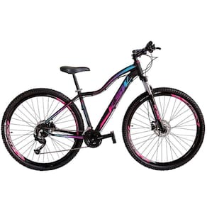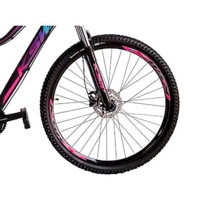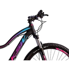 Bicicleta Aro 29 KSW MWZA 2020 Feminina 27v Hidráulico K7 Preto com Rosa e Azul 17