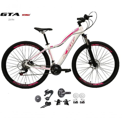 Bicicleta Aro 29 Ksw Mwza Feminina Kit 2x9 Gta Sunrun Disco K7 11/36 Pedivela 24/38d Com Trava - Branco/rosa Tam.15