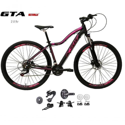 Bicicleta Aro 29 Ksw Mwza Feminina Kit 2x9 Gta Sunrun Disco K7 11/36 Pedivela 24/38d Com Trava - Preto/rosa Tam.17