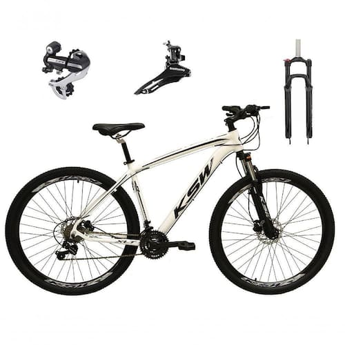 Bike aro 29 em alumínio, nova na caixa a pronta , produto com ótima qualidade e acabamento, possui 24 marchas com sistema de alavancas rapid fire que a cada clique uma marcha é trocada, garfo com suspensão e trava, sistema de freio a disco mecânico, câmbio dianteiro Shimano Tz e traseiro Shimano Acera M360. Garfo com trava no ombro e regulagem, sistema de cubos e catraca k7 de encaixe. Bicicleta pré montada, vai precisar apenas fixar a roda dianteira, guidão, selim e pedais.