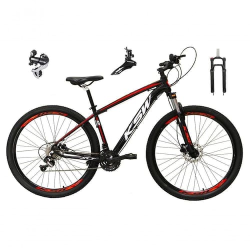 Bicicleta Aro 29 Ksw Xlt 24v Câmbio Shimano Acera K7 Garfo Trava Freio A Disco - Preto/vermelho/branco Tam.21