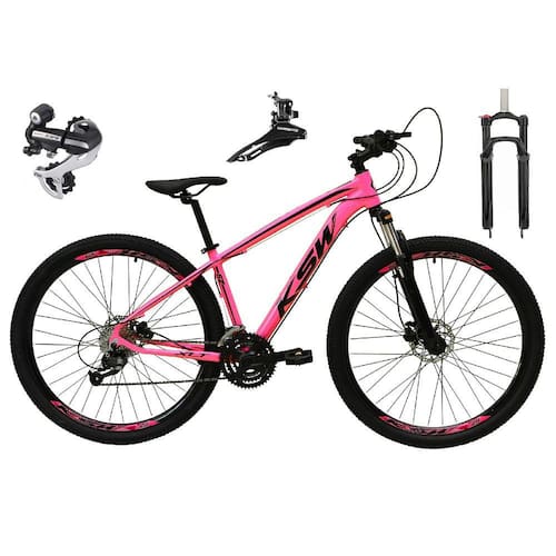 Bicicleta Aro 29 Ksw Xlt 24v Câmbio Tras. Shimano Acera K7 Garfo Trava Freio a Disco - Rosa - TAMANHO 15
