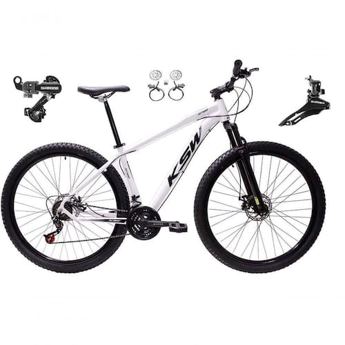 Bicicleta Aro 29 Ksw Xlt 24v K7 Câmbios Shimano Freio Hidráulico Garfo Trava - Branco Tam.17