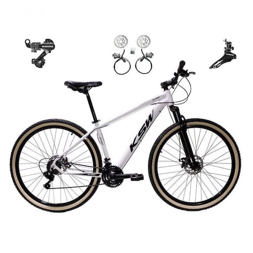 Bicicleta Aro 29 Ksw Xlt 24v K7 Câmbios Shimano Freio Hidráulico Garfo Trava Pneu Faixa - Branco Tam.17